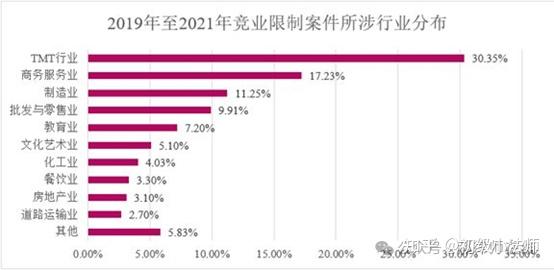 二是集中于竞争相对激烈的行业。根据报告统计,竞业限制案件主要多发生于TMT(互联网、媒体和通信等科技行业)、商业服务业、制造业、批发与零售业和教育行业等行业。这些行业相对石油、电信等基础行业,竞争相对激烈。